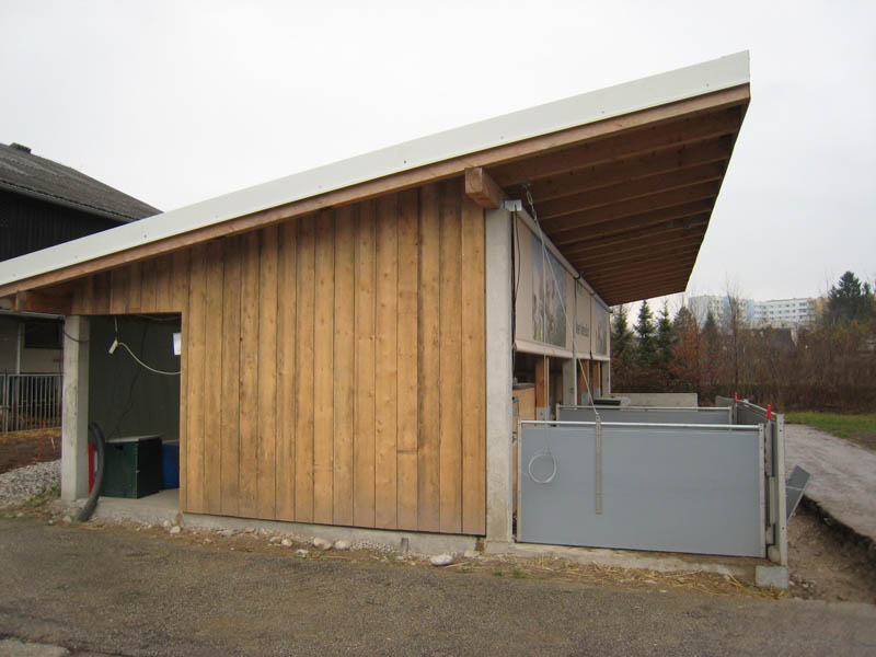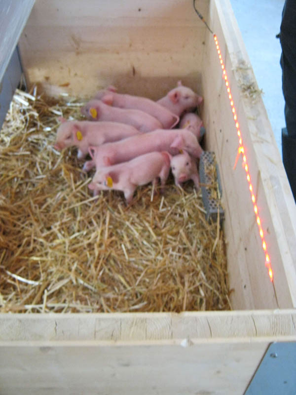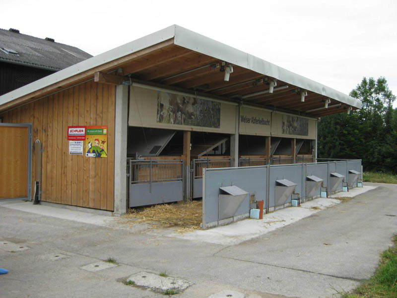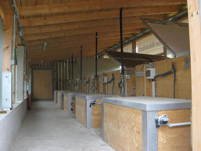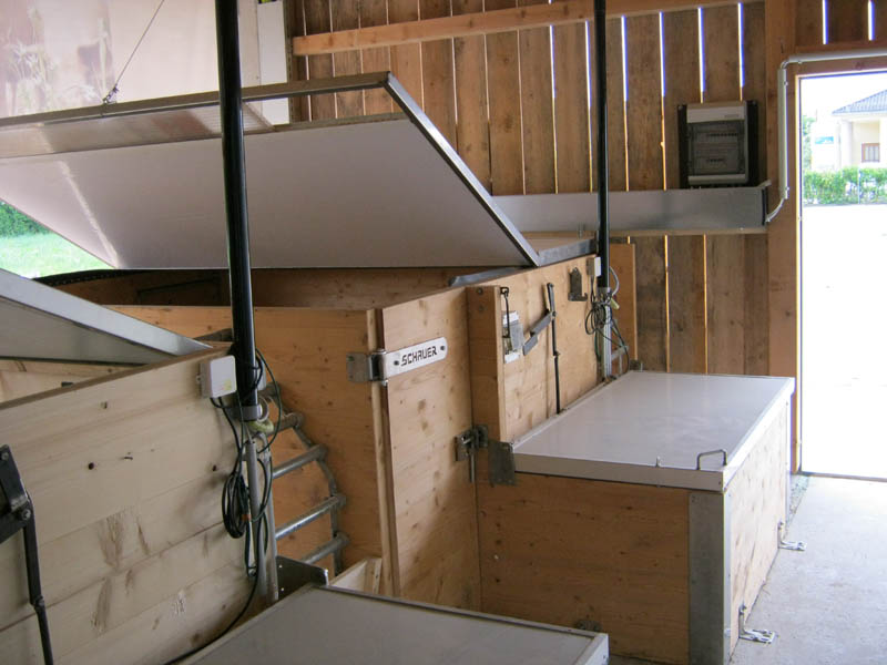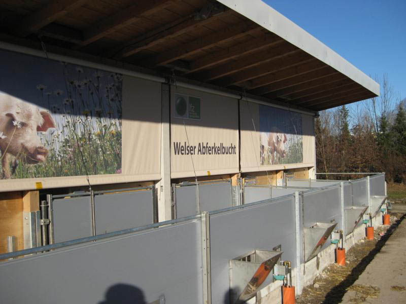 Das Kernstück der „Welser Abferkelbucht“ stellt eine Abferkelkiste mit den Maßen 2,00 m x 2,20 m dar. Diese Kiste wird aus Dreischichtplatten (58 mm) gefertigt und in der kalten Jahreszeit mit einem beheizbaren Deckel abgedeckt. Daran angegliedert findet sich das Ferkelnest, das mit 1,1 m² während der 6-wöchigen Säugezeit Platz für alle Ferkel bietet und mithilfe einer Deckelheizung eine optimale Temperaturführung ermöglicht. Zum Fressen muss die Sau den Liegebereich verlassen und einen Fressstand betreten.